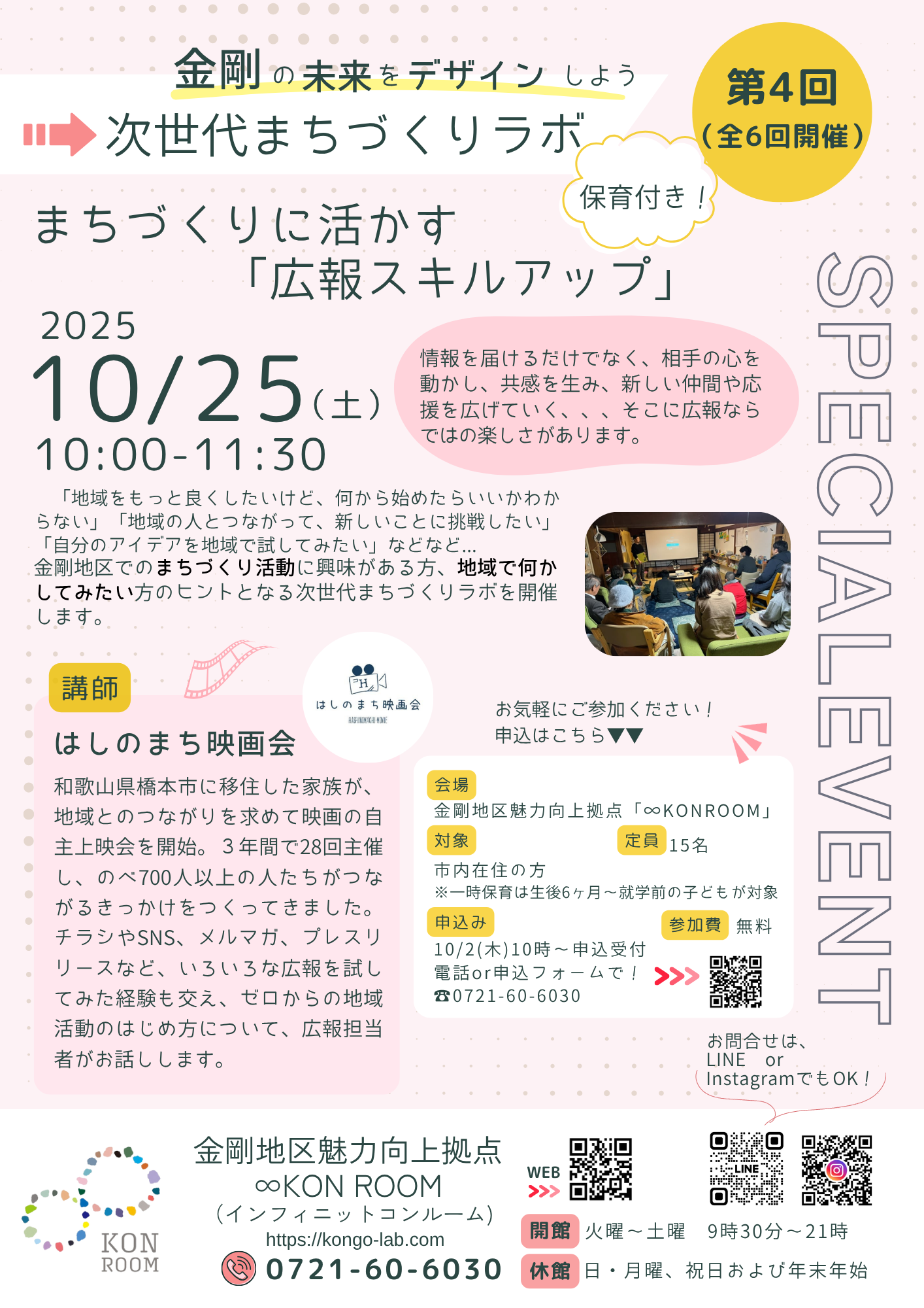 ●問合せ先 TEL: 070-4007-0190(∞ KON ROOM)